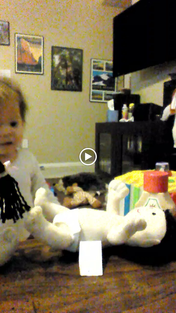 ...of what? Of E "singing". E has always loved music and has been doing what I think is singing for a while, where her babbling takes on a slightly rhythmic or tonal quality that could possibly be a song to a mother's ears...which song is as good your guess as mine but it could be a song.
